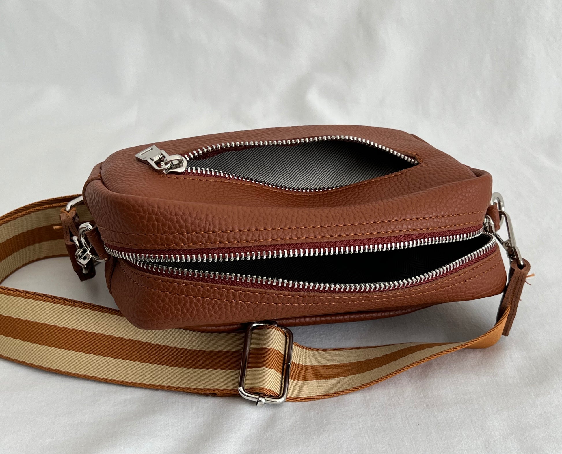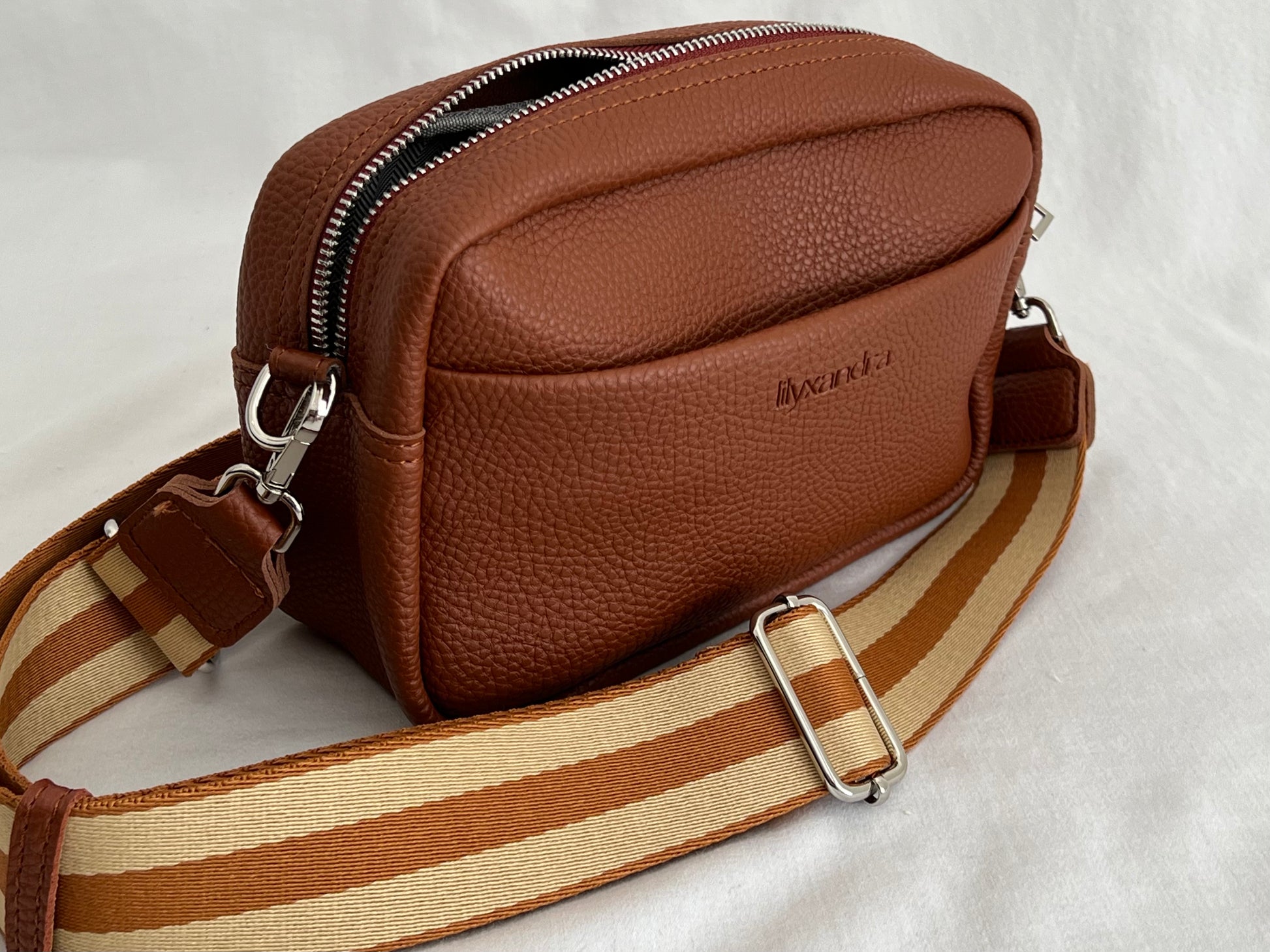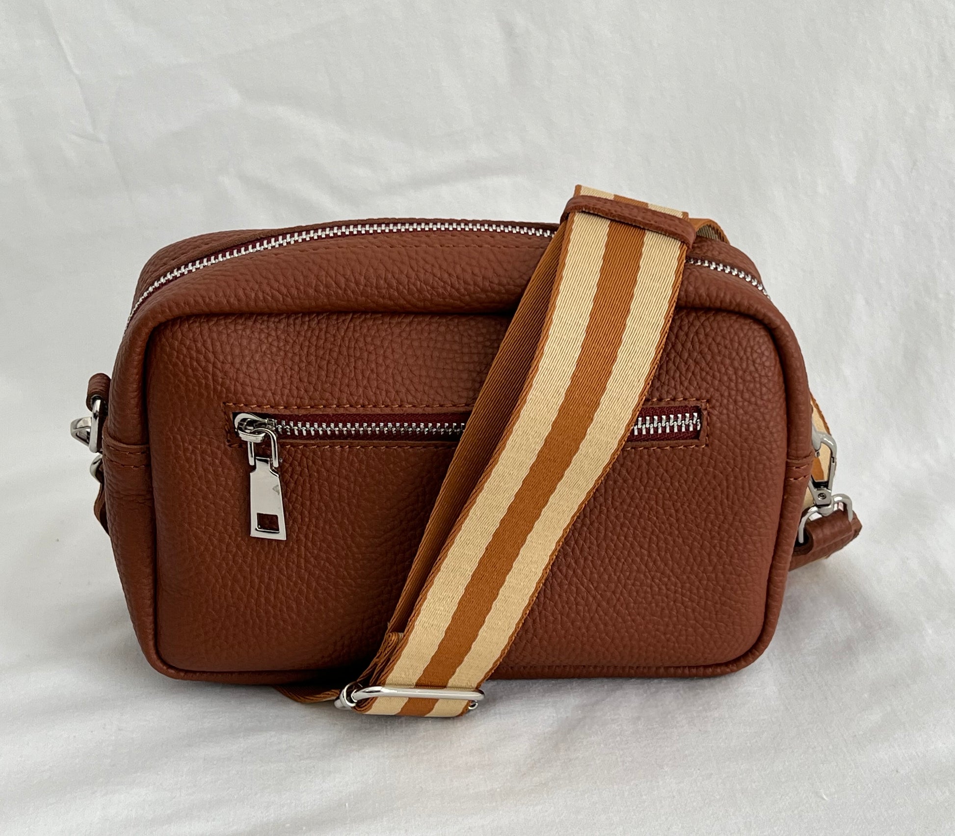 The ultimate crossbody. She fits all your essentials including an iPhone 14 Pro Max and is the perfect go-to, everyday piece for all ages. Has two external pockets for extra storage and internal compartmentalisation for added organisation.