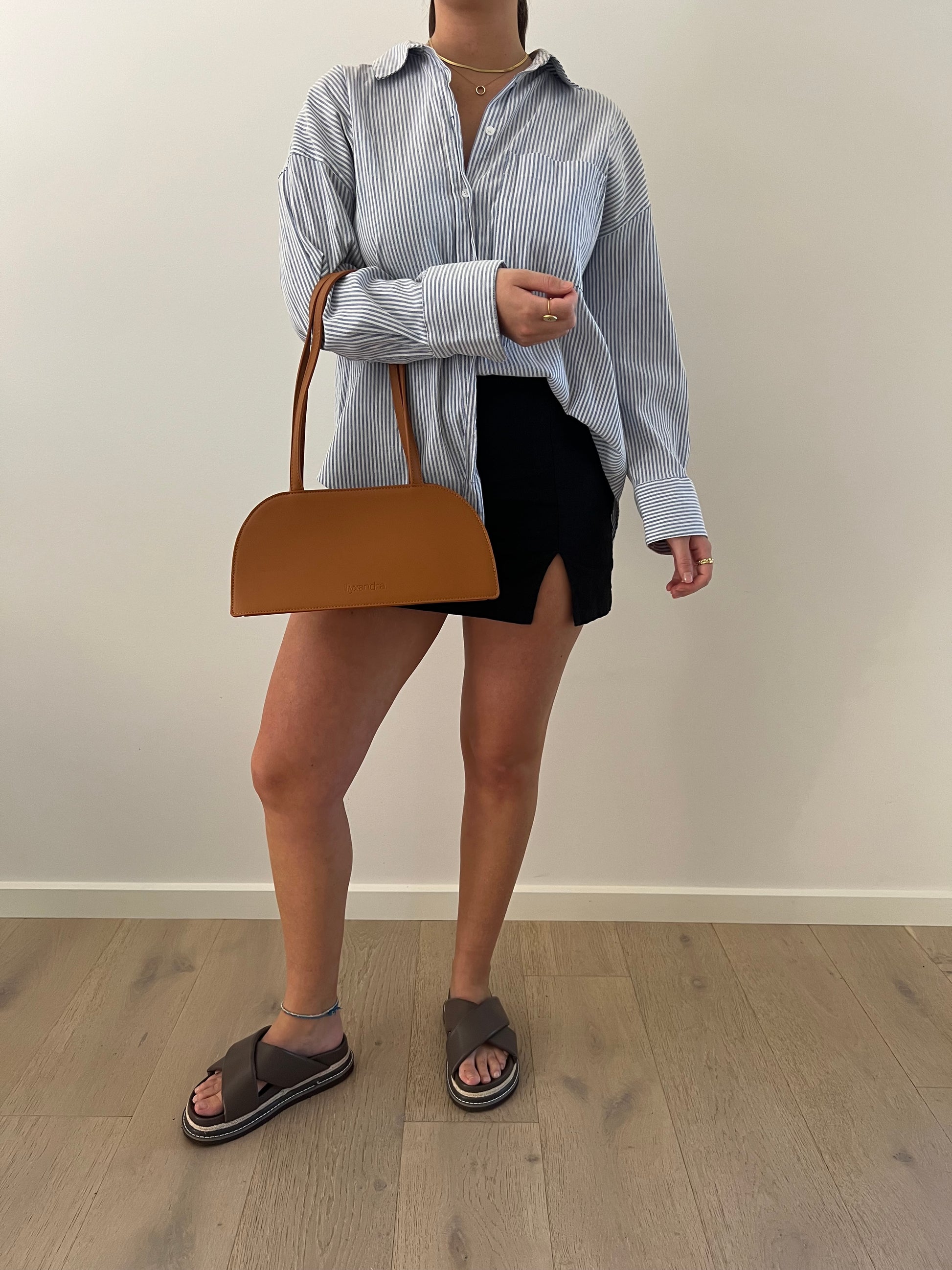 Equipped with an outside mini card pocket, generous shoulder straps and plenty of internal room for all the essentials including an iPhone 14 Pro Max, with a magnetic clasp for added security.