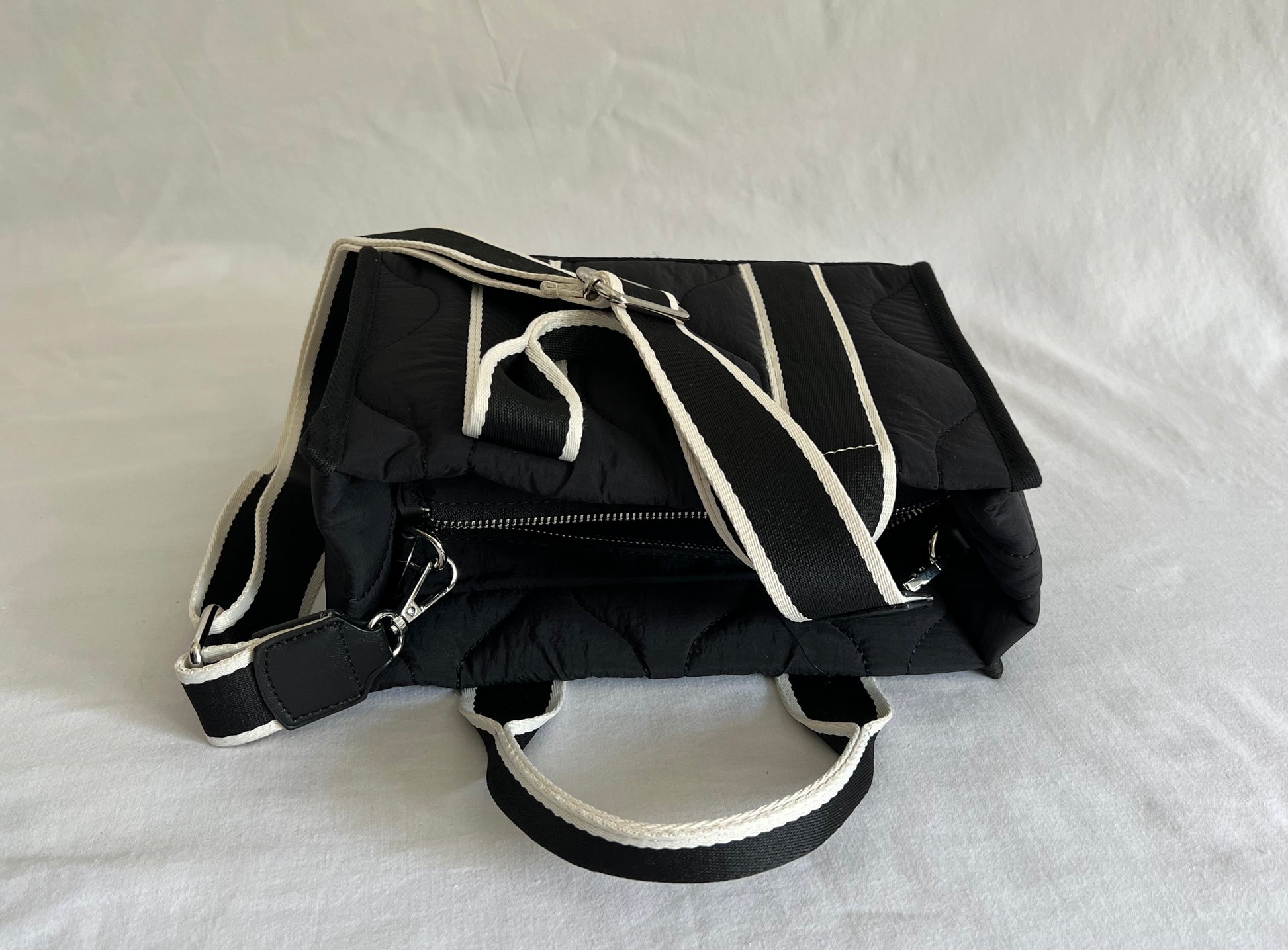 - Silver hardware.