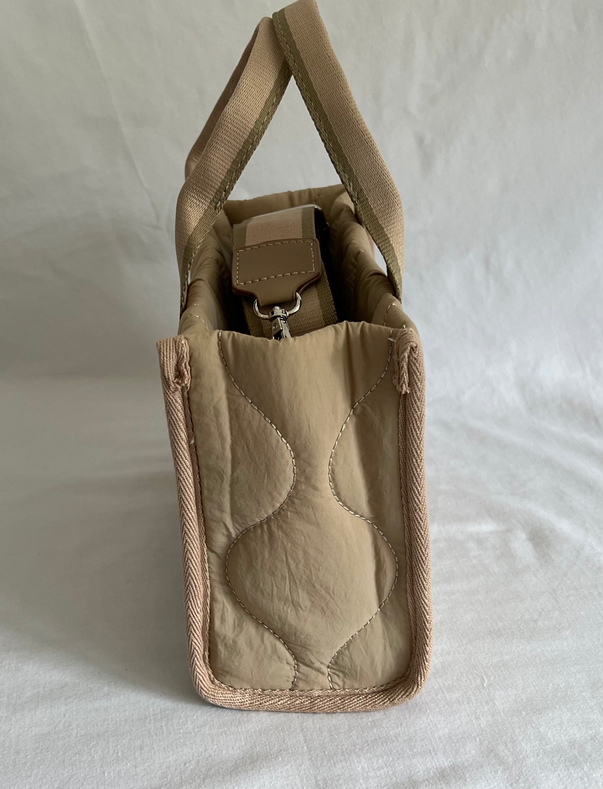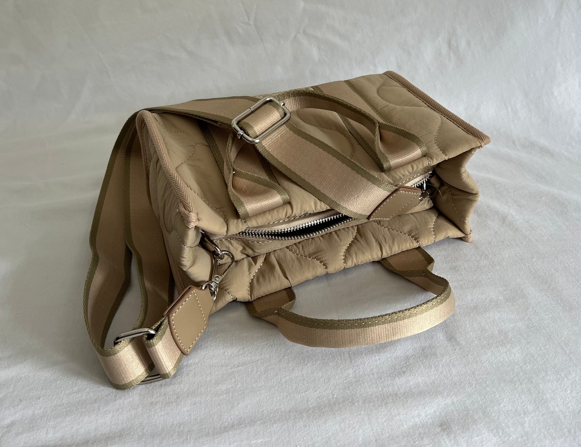 A practical approach to an all-day tote with soft padding, can be worn as a tote or a crossbody with the dual strap option and added extra security with a full zip. Fits an iPad mini or similar.